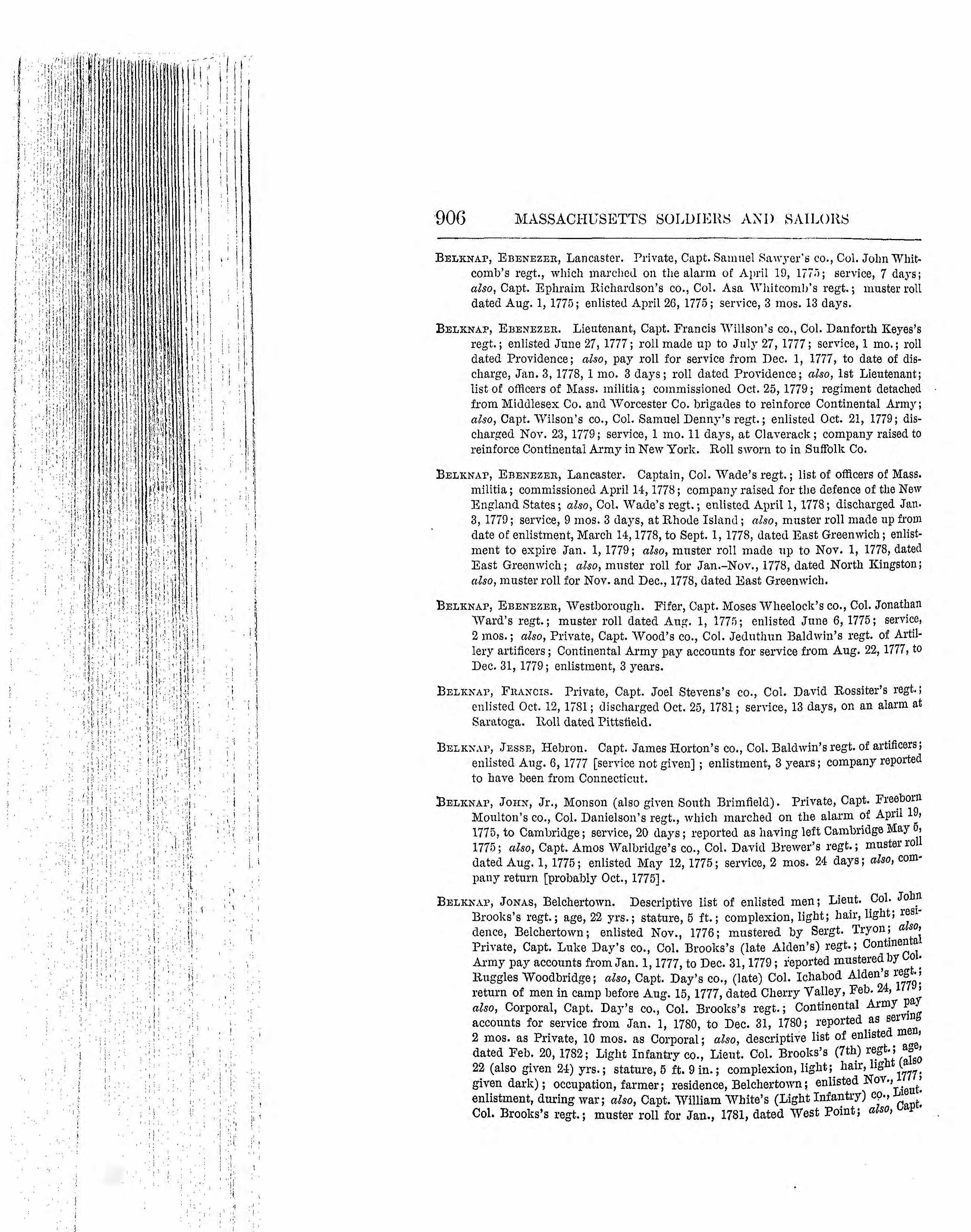 - Massachusetts, Secretary of the Commonwealth. Massachusetts Soldiers and Sailors of the Revolutionary War, vol. 1 (Wright & Potter Printing Co.; Boston, Massachusetts;189[6], p. 906