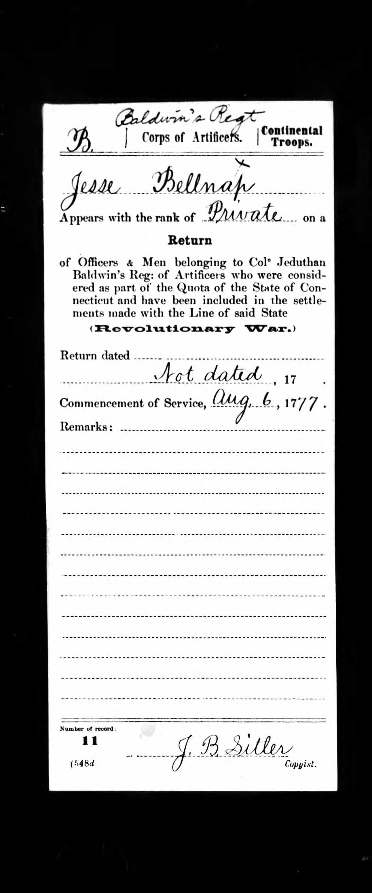 - Jesse Bellnap: Image 200: Return of Officers and Men of Artificers in Connecticut Quota, not dated