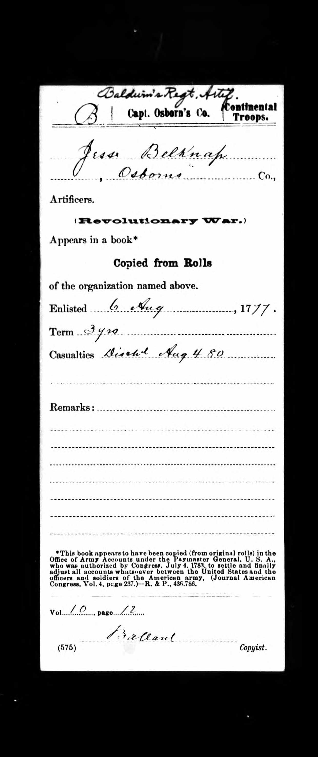 - Jesse Belknap: Image 202: Continental Troops Roll, Capt. Osborn’s Co.